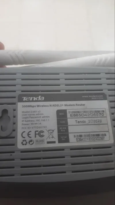 Modem Wifi Tenda Wirelees N ADSL2+ AVEC 300mbps. Model: D301 v4. Etat : Utilisée Bon Etat.