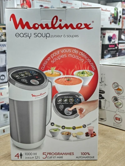 ✅ Moulinex Blender chauffant, Mixeur soupe, Puissance 1000 W, Capacité 1,2 L, 5 programmes automatiques, Double paroi, Maintien au chaud 40 min, Livret recettes, Easy Soup, Inox LM841B10