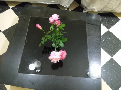 table basse noir/un pied cassé et des rayures sur le verre