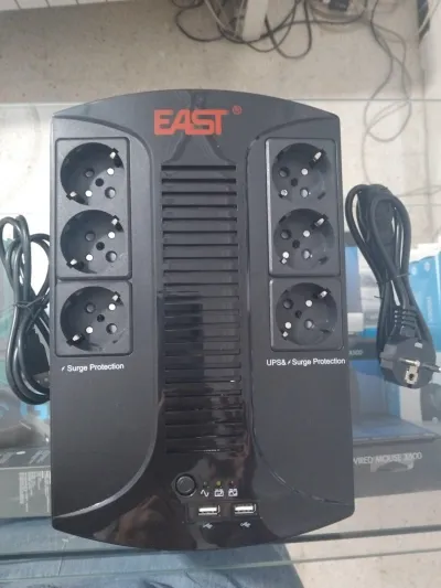 Onduleur + stabilisateur fiable de la marque reconnue EAST Equipé de 3 prises FR ondulées Adaptable à tous les appareillages alimentés en 220v Design élégant, pratique et compacte D