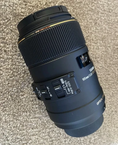 Je vend un sigma 105mm F2.8 DG OS HSM MACRO Monture Canon+ étuis dori objectif comme neuf