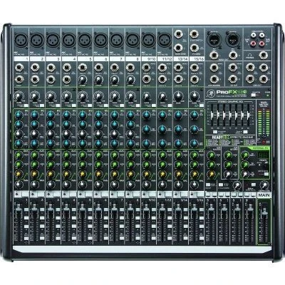 Console 16 voies dote de 10 préamplis micros équipés de la technologie exclusive Vita, 16 entres ligne, 3 envois auxiliaires, 4 sous-groupes, 4 compresseurs sur les tranches 5-8, 16 effet