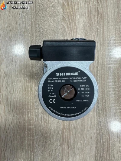 VENTE DE POMPE SILENCIEUSE DE LA MARQUE SHIMGE 3 TURBINE. vente article plomberie chauffage et article sanitaire . chaudière - radiateur - robinetterie - pièce de rechange chaudière بي�