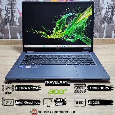 💻Acer Travelmate 14 spin p4 مواصفات الجهاز مع السعر 👇 ✨ CPU: ultra 5 125u 1.30GHz 12 ✨Graphic Card: Intel UHD Graphics ✨ DISK: 512Gb SSD NVMe ✨ RAM: 16