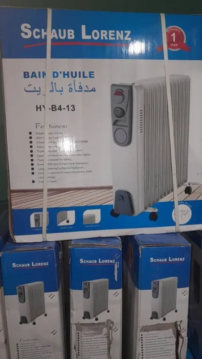 je mets en vente 5 bains d'huile d'une Puissance Thermique 13 - 11 éléments 2500 W ventile -3 réglages de chaleur -Thermostat réglable -Protection contre la surchauffe 2 bains d'huile