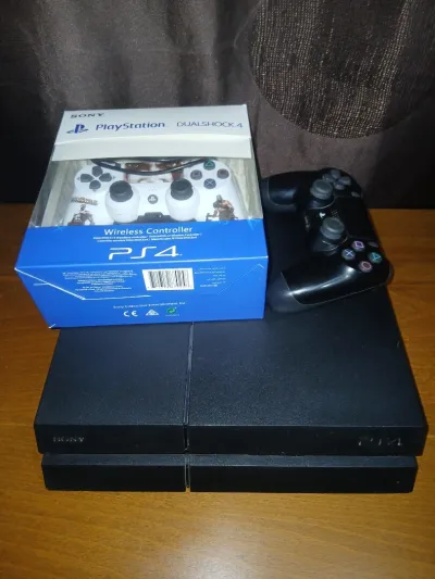 PS4 fat état 9/10 ✅ : 1-PS4 model 1116 + version 12.02 2-Stockage 500 gb 3-yji m3aha 2 manettes ps4 et ps5 4-PS4 n9ya rebi bark 5-W bayna yjiw m3aha les câbles ta3ha 6- wji m3aha CD fi
