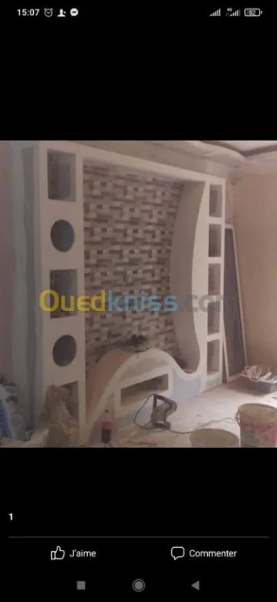 Toutes les décorations de placo platr est bvc dimontbl/sipartion /mable tv/abiyaj prix fourniture est pose 170 mtr Bsal3a knuaf