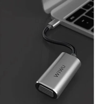 Descripción Marca: WiWU Modelo: Alpha Tamaño: 47.5 * 2535 * 14.7 Longitud del cable: 110 mm Material: aluminio Resolución: 2048 * 1152 @ 60Hz Adaptador tipo C a puerto VGA
