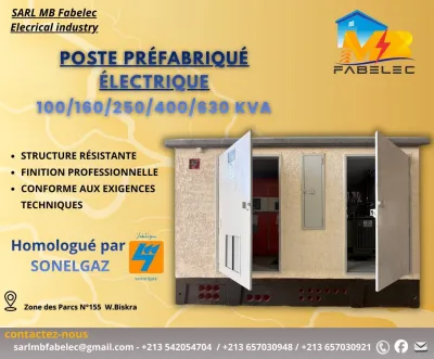 Cabine préfabriquée en béton avec une longueur de 5M et largeur de 2.6M homologué par Sonelgaz.. équipé avec équipements sf6 motorisé 30KV et Transformateurs (100KVA - 250KVA - 400KV