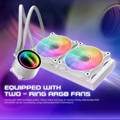 WATERCOOLING RAIDMAX LS360 WHITE Raidmax Infinita 360mm ARGB Liquid CPU Cooler – WHITE Avec un capuchon conçu par Raidmax, le nouveau capuchon de pompe circulaire de la série Infinita LS