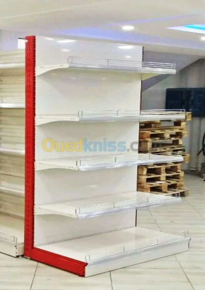 Rayonnage étagère magasin et superette ,importé d' Ukraine , neuf , jamais utilisé Murale : ( 10 mètre ) -base: 50 cm Centrale : 2 * ( 3 mètre) -base : 50 cm