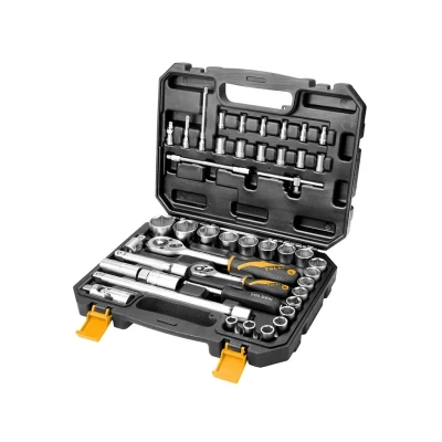 Caisse de douilles de 45pcs (industriel) 15142 • 18 douilles CrV 1/2″ : 10, 11, 12, 13, 14, 15,16, 17, 18, 19, 20, 21,22, 23, 24,27, 30, 32 mm • 2pcs poignée à cliquet ergonomique