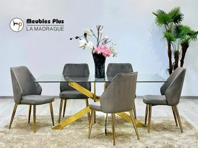 Apportez une touche d’élégance moderne à votre intérieur avec cette superbe table de salle à manger accompagnée de ses 6 chaises assorties.