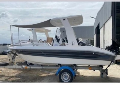 Polyor Open Line 550 yamaha 80ch 4 temp Année 2025 00km neuf Longueur 5m50 Toute option équipé de tout Réservoir essence 140litre Bimini Gilet de sauvetage Couronne Boussole Filtre sépa