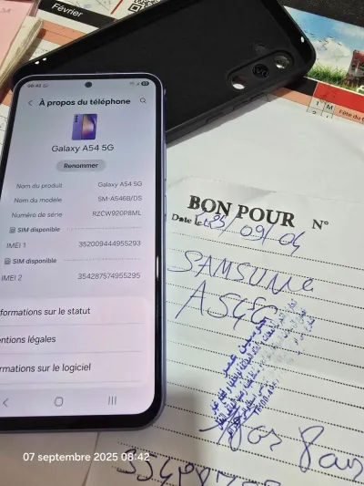 Samsung A54 5G duos 8/128 très belle couleur caba sans la boîte fih anti-choc incassable et bon d'achat....état 20/20