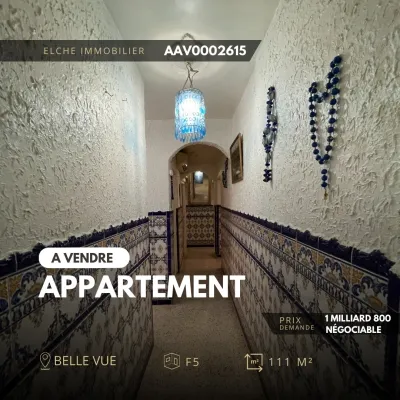 🔶 Réf : AAV0002615 🏡 À VENDRE : Appartement F5 situe à belle vue, ORAN. •🔺 Superficie : 111 m². •🔺Équipements :eau💧, resérvoire, électricité⚡, gaz, compteur ind