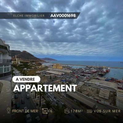 🔶 Réf : AAV0001698 🏡 À VENDRE : Appartement ,F6 situe à FRONT DE MER, oran •🔺 Superficie : 178 m². •🔺Équipements : eau, électricité, gaz, compteur individuel, balcon ,