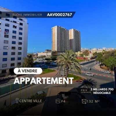 🔶 Réf : AAV0002767 🏡 À VENDRE : Appartement F4 situé à CENTRE VILLE, ORAN. •🔺 Superficie : 132 m². •🔺Équipements : eau💧, électricité⚡, gaz, compteur individuel,
