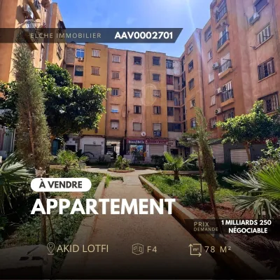 🔶 Réf : AAV0002701 🏡 À VENDRE : Appartement F4 situe à AKID LOTFI, ORAN •🔺 Superficie : 78 m² avec deux façades •🔺Équipements :eau, électricité, gaz, compteur individ
