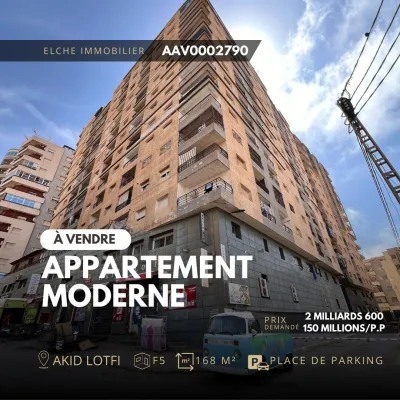 🔶 Réf : AAV0002790 🏡 À VENDRE : Appartement F5 situe à akid lotfi, bir el djir ORAN. •🔺 Superficie : 168 m² en deux facades. •🔺Équipements : eau💧, electricité⚡️