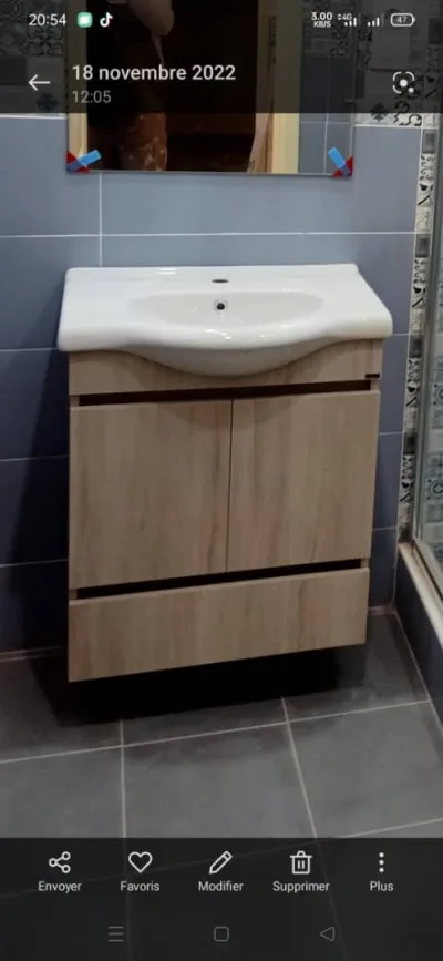 J'ai un meuble salle de bain marque sanitana portugais en melamenie demension 65largeur sur 45profondeur Avec miroir Avec pieds au suspendu 4couleurs Produit importation de qualité Vente