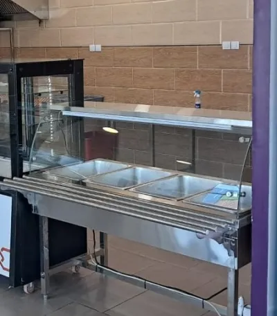 Bain marie 4 bac Gn 1/1 sur pied avec vitre bombe Importation turque dimensions : 1450/700/1350h disponible aussi 5 et 6 bac