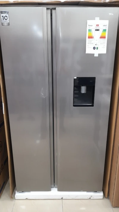 Promotion réfrigérateur TCL Side By Side deux portes twin eco inverter avec afficheur et distributeur d'eau Largeurs 92cm Hauteur 1.77cm Compresseur garantie 10 ans Adresse maps (électr