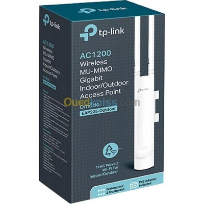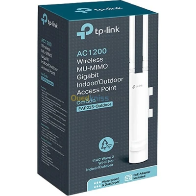 📦 TP-Link EAP225-Outdoor | Point d’accès WiFi Extérieur Mesh AC1200 | IP65 ✅ Caractéristiques principales : - Débit WiFi jusqu’à 1200 Mbps (2,4 GHz + 5 GHz) avec technologie M