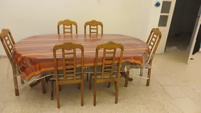 Vends table de salle à manger en hêtre massif avec 6 chaises Etat : 9,5/10 Intacte Prix : 75 000,00 DA