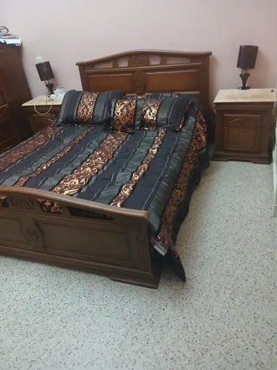 hêtre غرفة نوم بحشب حالة جيدة السرير + الخزانة 4 أبواب .... 2x Table de nuit et coiffeuse