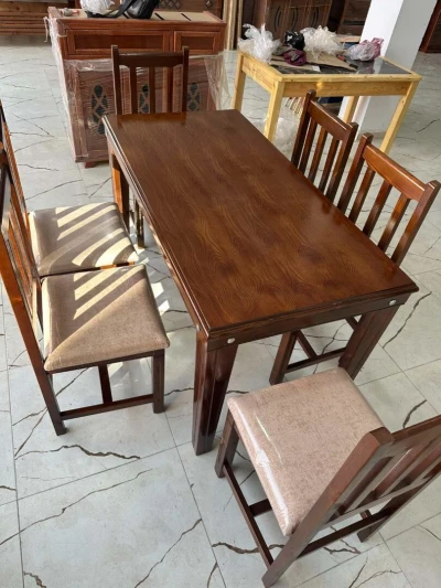 6 chaises pour table à manger en bois être très bien finis , solide, présentable, de couleur marron,avec tissu anti tache de très haute qualité.. A : 17000 DA ,----> la chaise 1000