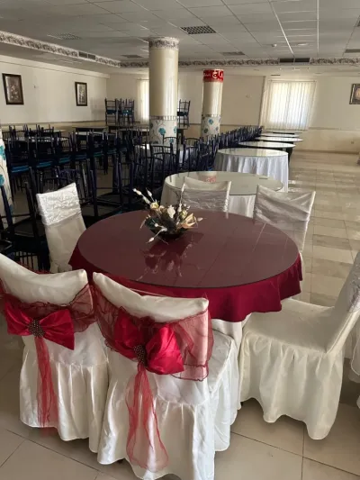 70 Table avec 6 chaise et nappe de salle des fêtes neuf a vendre