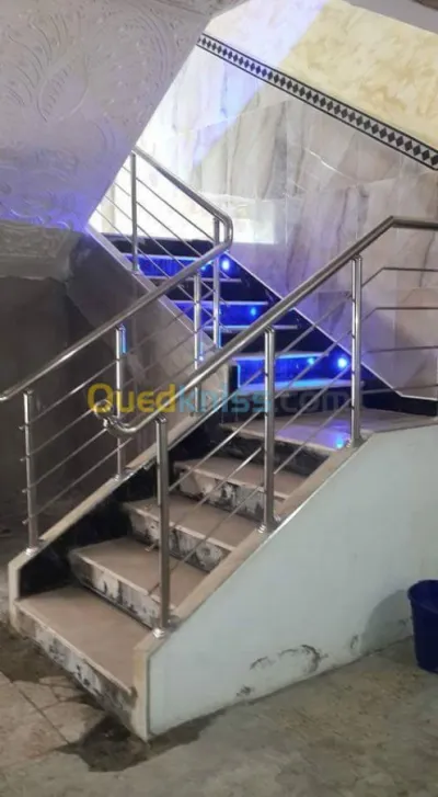 rampe d' escalier en inox façade en verre trempé rideaux électriques portes automatiques armoires en verre Inox 304.L Inox 316.L cabine de douche aluminium/pvc table basse