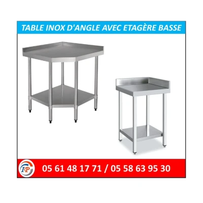 TABLE INOX D'ANGLE AVEC ETAGÈRE BASSE DIMENSION:SELON LE CLIENT #INOXPARTNER