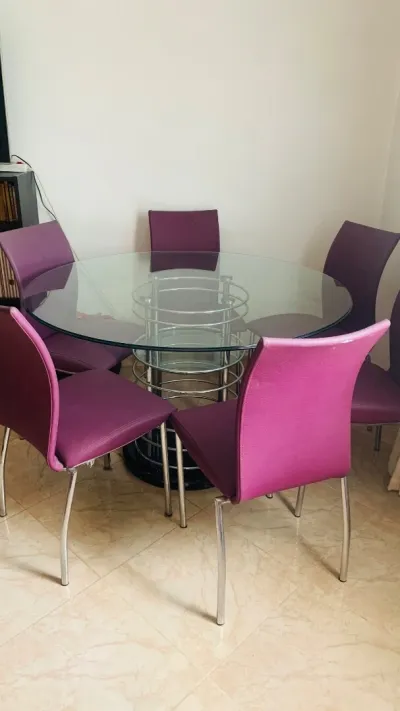 Magnifique table en verre avec 6 chaises. Ce sont des photos réelles.