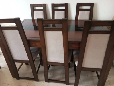 عندي طاولة عشاء بستة مقاعدة مستعملة عام فقط و كأنها جديدة بسعر 35000دج نصف سعرها
