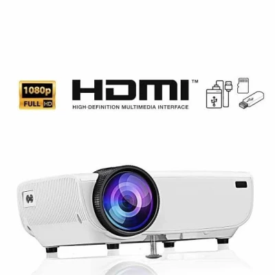 Vidéoprojecteur Apeman, résolution 1080p, projection : 1,5 à 4m, taille écran: 1 a 4m, connectique: HDMI, USB, AV, HP: 2x4 ohms, durée vie lampe: 5000h.