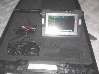 Appareil neuf jamais utilisé, avec un bloc V1 , un V2, un palpeur droit neuf avec câble et 3 palpeurs d'angle 45°, 60° et 70°.