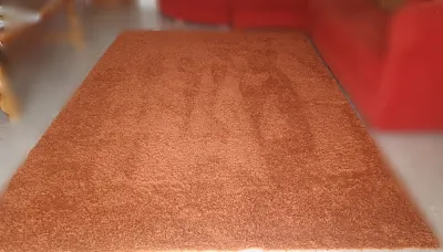 Tapis de couleur terracotta. Dimensions 2m90 sur 2m