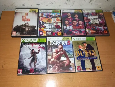 pack de 7 dvd xbox360 -GTA 5 -BULLY -FARCRY 3 -TOMB RAIDER -PES 2018 -THE EVIL WITHIN -GRAND THEFT AUTO LIBERTY CITY constantin