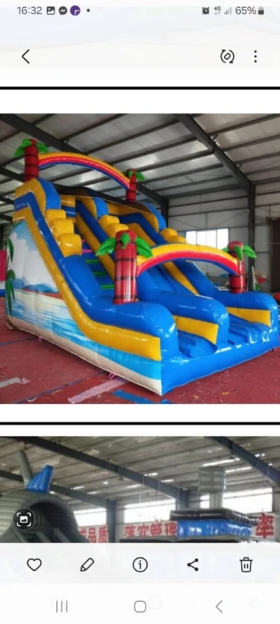 Un toboggan géant gonflable sans souffleur en état moyen il faut prévoir un nettoyage et quelques réparations sinon fonctionne correctement je le liquide à 08 millions sans gonfleur à