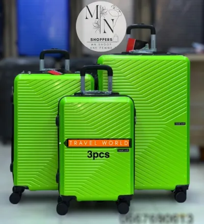 À vendre : Série de valises incassables (3 pièces : petite, moyenne et grande). Marques : Tourist World et Travel World. Solides, légères et élégantes Idéales pour vos voyages !