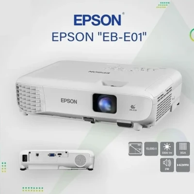 🎥 Epson EB-E01 – Vidéoprojecteur 3LCD XGA 💡 Idéal pour bureaux, salles de formation et projection à domicile ⚡ Luminosité : 3 300 lumens 🖥️ Résolution native : XGA (102
