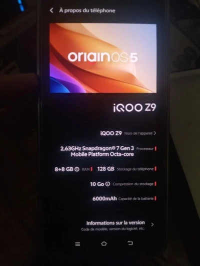 Vivo Iqoo Z9 5G 🔴 8/256 🔴 Snapdragon 7 Gen 3 (4nm) 🔴 Ecran Amoled 1.5K 144hz 4500nits 🔴 Batterie 6000mAh 🔴 charge 80W SuperVooc 🔴 Camera 50 megapixels 4k30fps