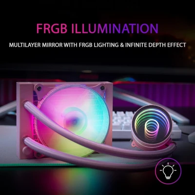 ML-ONE120 LIQUID COOLING KIT Infinite Mirror FRGB and exceptional performance in liquid cooling systems with an extraordinary power of up to 200W. New Pump Opti-Chamber, FDB FRGB Silent Fan,