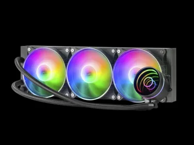 AURA GL360 LCD LCD ARGB LIQUID COOLER • 4" IPS LCD Display • Optimized Fluid Running System • Upgraded Copper Base • Right Angled Cooling Fins • Hydraulic PWM Fans • Cabless Dai