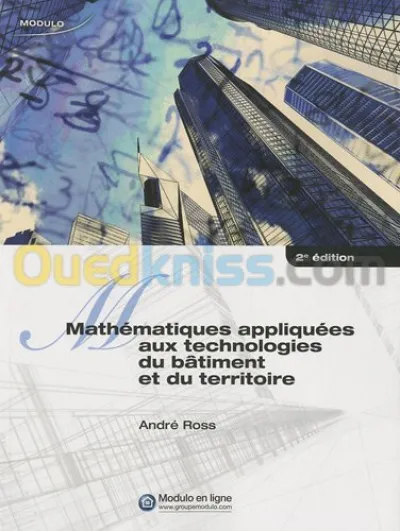 Titre : Mathématiques appliquées aux technologies du bâtiment et du territoire, 2e édition Auteur : André Ross Editeur : Modulo Année : 2011 Théme : Sciences De L'Ingénieur Sous-thé