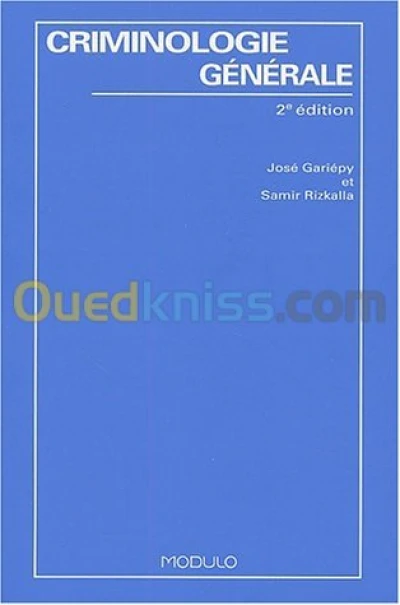 Titre : Criminologie générale, 2e édition Auteur : José Gariépy, Samir Rizkalla Editeur : Modulo Année : 2003 Théme : Criminologie Et Psychotraumatologie Sous-théme : Criminologie Sc