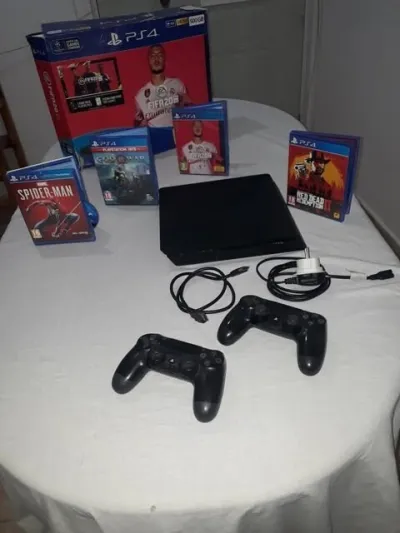 Ps4 slim 500 gb Manette original Ticket de garentie Les câbles Avec un compte de 6 jeux (red dead redemption 2, far cry 6, sniper elite, god of war ragnarok ....)+ cd god of war 4