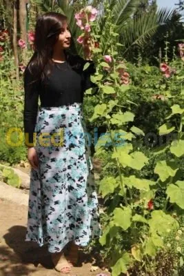 فستان زهري ربيع 2021 Robe à Fleurs Printemps 2021 فستان نسائي طويل بنمط ورد اسود واكمام لسان. الطول: حوالي 140 سم. الت